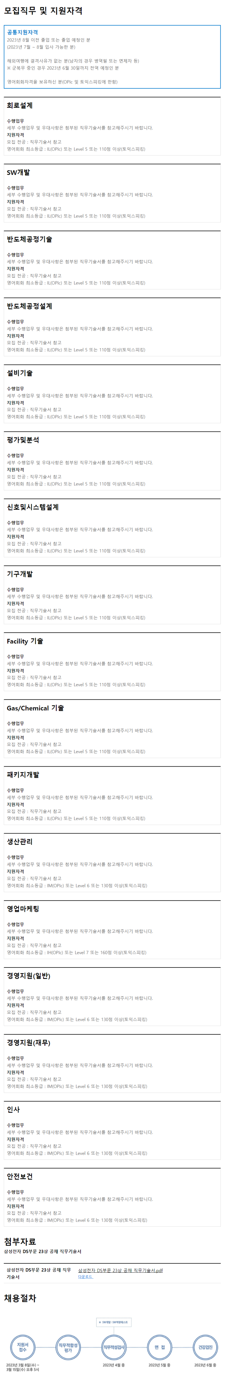 이렇게 23년 상반기 삼성전자 신입사원 채용 공고와 설비기술 직무설명에 대해 살펴보았습니다.